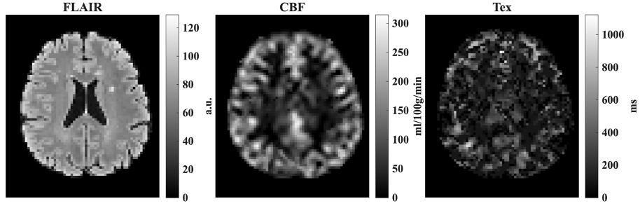 Figure 1 FLAIR, CBF and Tex maps of a volunteer